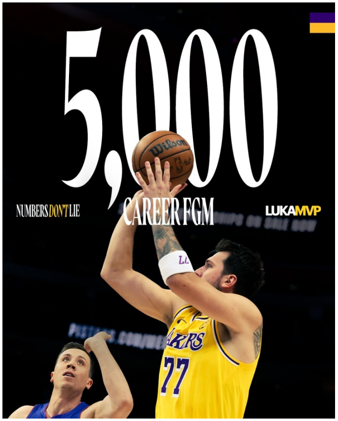 在湖人客场不敌独行侠的焦点战前 一项历史数据的跨队致敬 洛杉矶湖人客场以111-118不敌达拉斯独行侠,这场西岸前四的强强对话在赛前就已充满故事性——独行侠核心卢卡·东契奇(Luka Dončić)